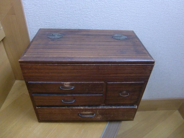 - 昭和 レトロ アンティーク ★ 木製 裁縫箱 ソーイングボックス 引き出し 小物入れ ジュエリーボックス 古道具 収納箱 道具箱 パーツケース