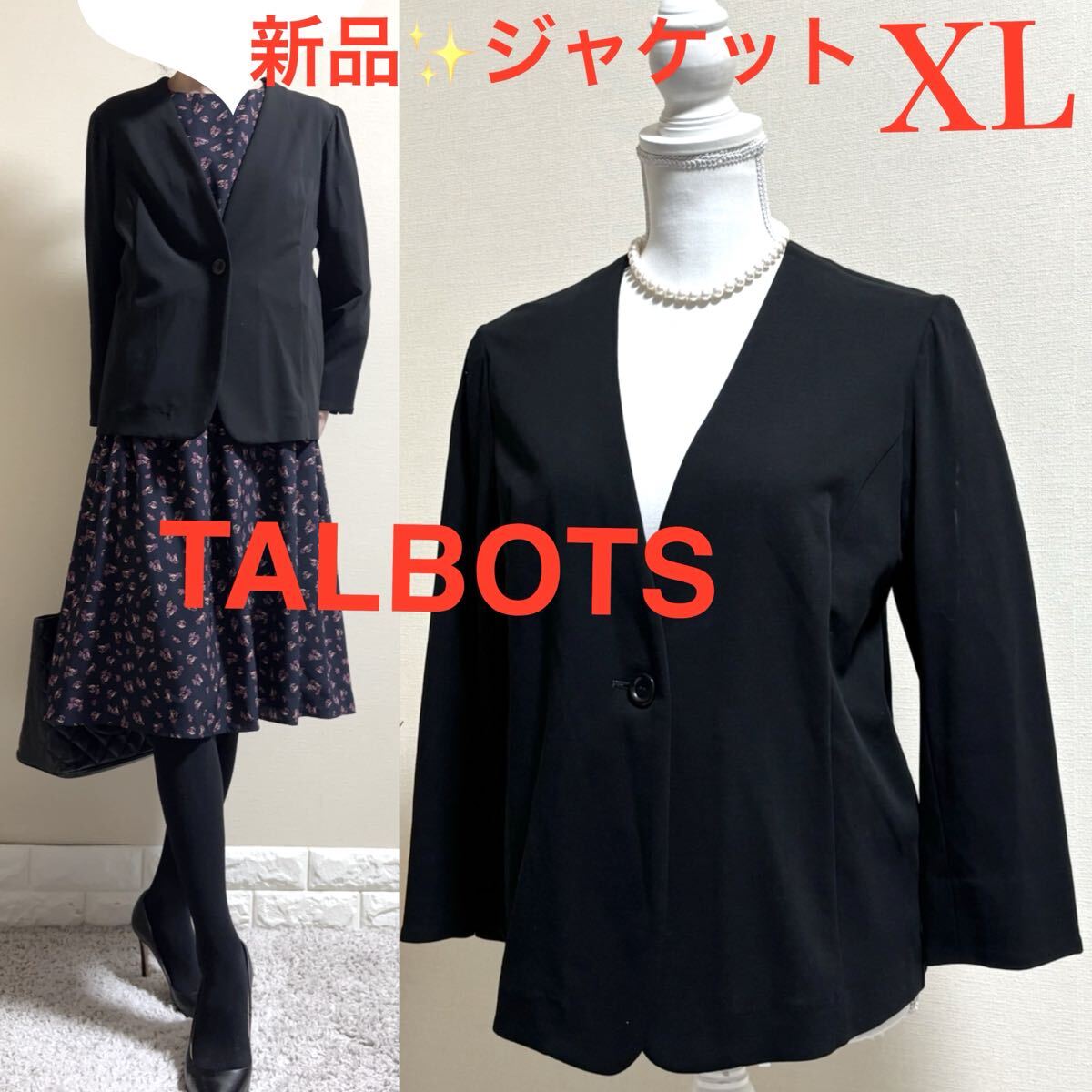 - タグ付き新品!大きいサイズ!TALBOTS タルボット 軽量 Vネック 洗える ノーカラージャケット 黒 13 XL V首 9分袖丈 春夏秋