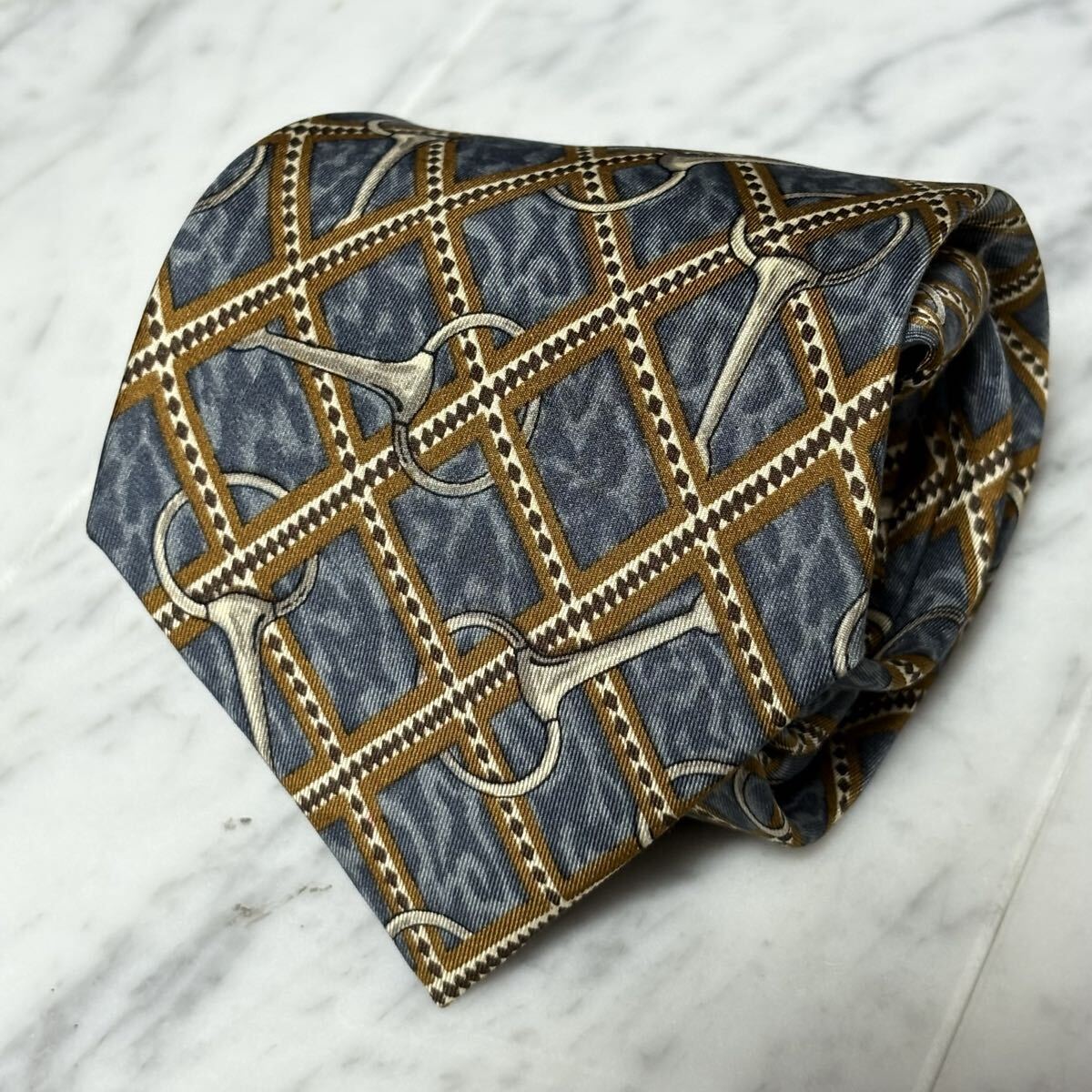 - 999円~ CELINE ネクタイ グレー ブラウン チェック柄 総柄 (GB1)