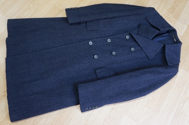 - J521 即決 MEN'S UEAR JUST ヘリンボーンウール ダブルブレスト コート Pコートタイプ チャコールグレー