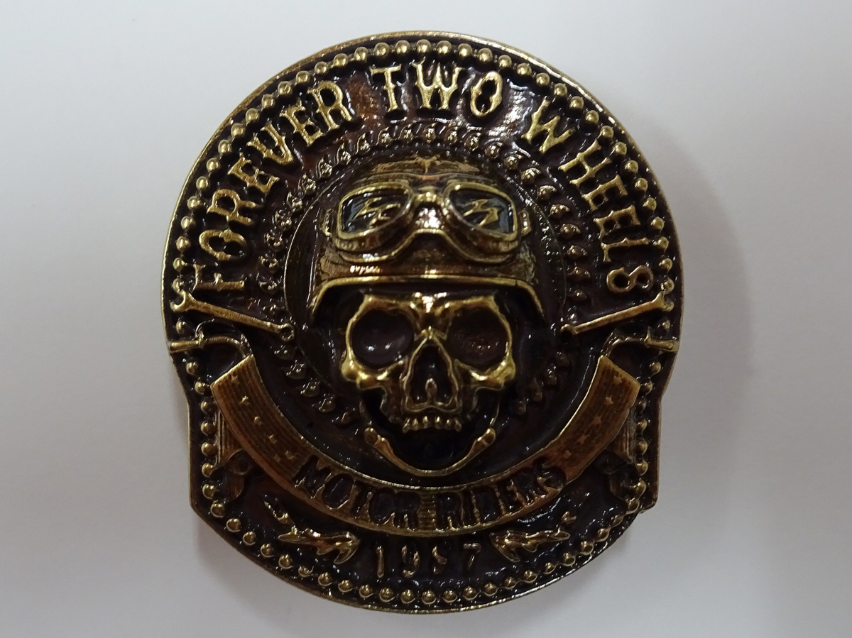 > FOREVER TWO WHEELS 1987 スカル MORTR RIDERS ゴールドタイプ コンチョ 財布 サイドバック 送料クイックポスト185円 H4