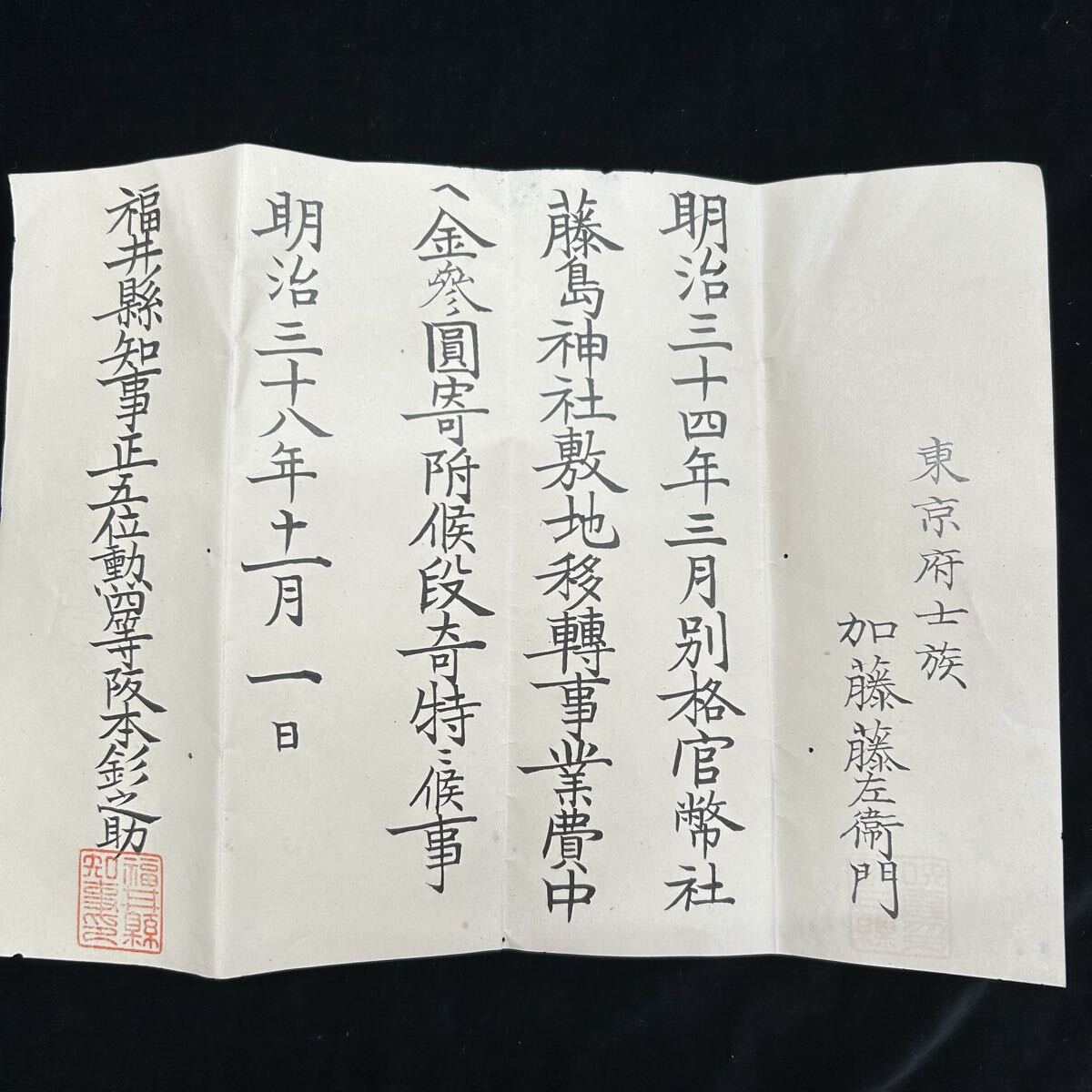 - 『黒竜丸責任者』加藤藤左衛門 福井藩 元製造方吟味役【 古文書 辞令 感謝状 古書 任命 和書 】
