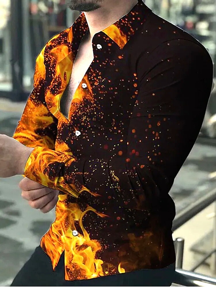 > 炎柄 長袖シャツ 黒赤 041 柄シャツ Yシャツ ドレスシャツ ヤクザ ヤンキー オラオラ系 服 派手 パーティー イベントメンズ ファッション