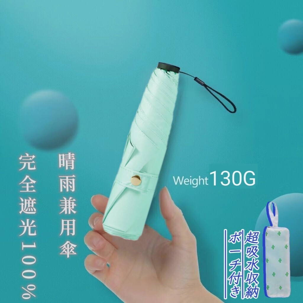 - 日傘 折りたたみ傘 超軽量 130g UVカット率100% 完全遮光 紫外線対策 晴雨兼用 超コンパクトサイズ 超撥水 収納ポーチ付き アイスグリーン