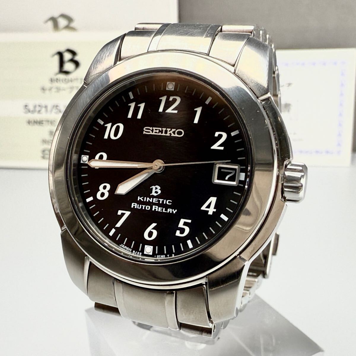 - 【稼働】SEIKO/セイコー BRIGHTZ/ブライツ 腕時計 自動巻き デイト アラビア文字 ブラック文字盤 5J22-0D40 メンズ ウォッチ 箱あり チタン