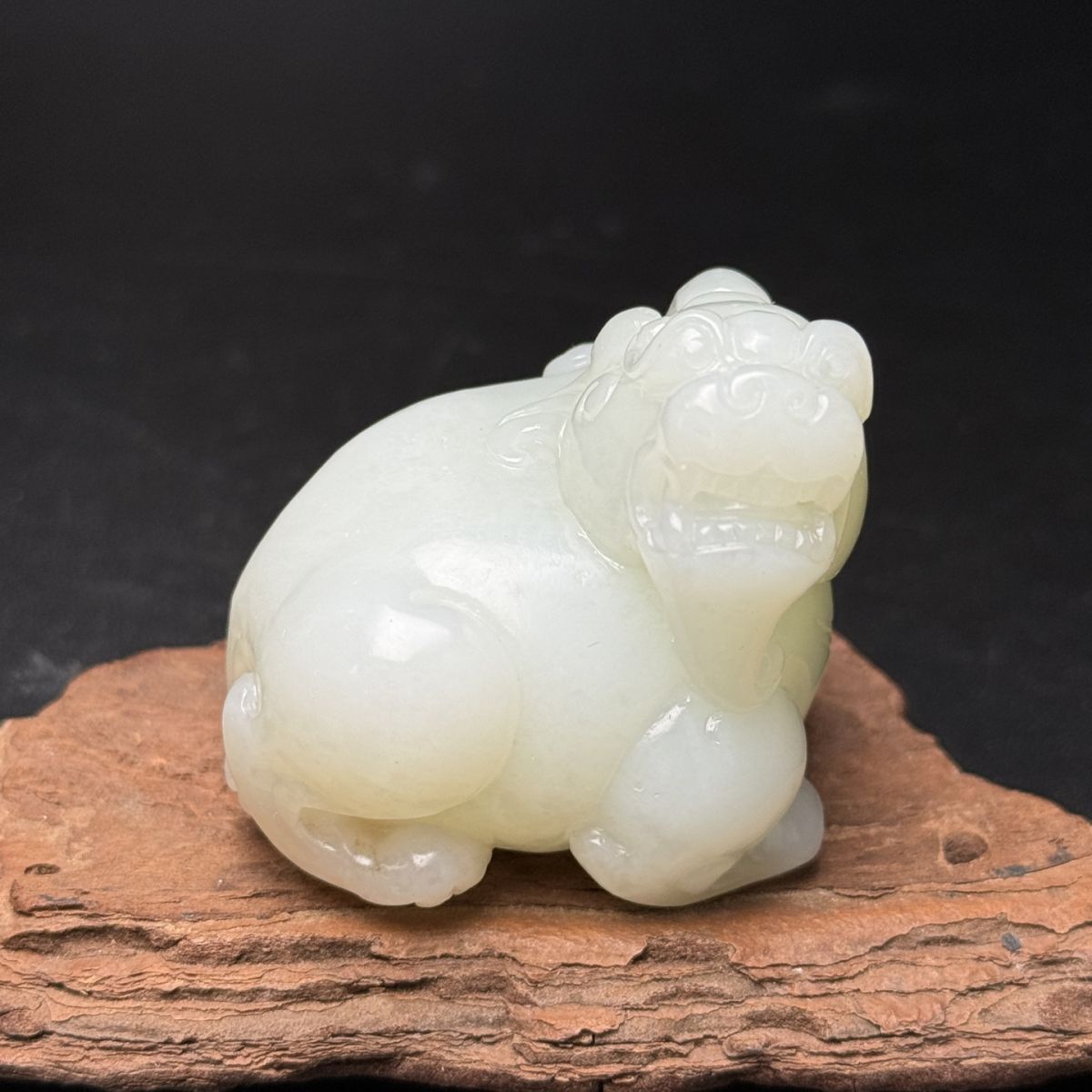 - 永し 清時代 和田玉 貔貅 招財進寶 彫り件 極細工 裝身具 根付 置物擺件 古美術品 時代物 古董品 収集 古美味 旧家蔵出 中国唐物 113g