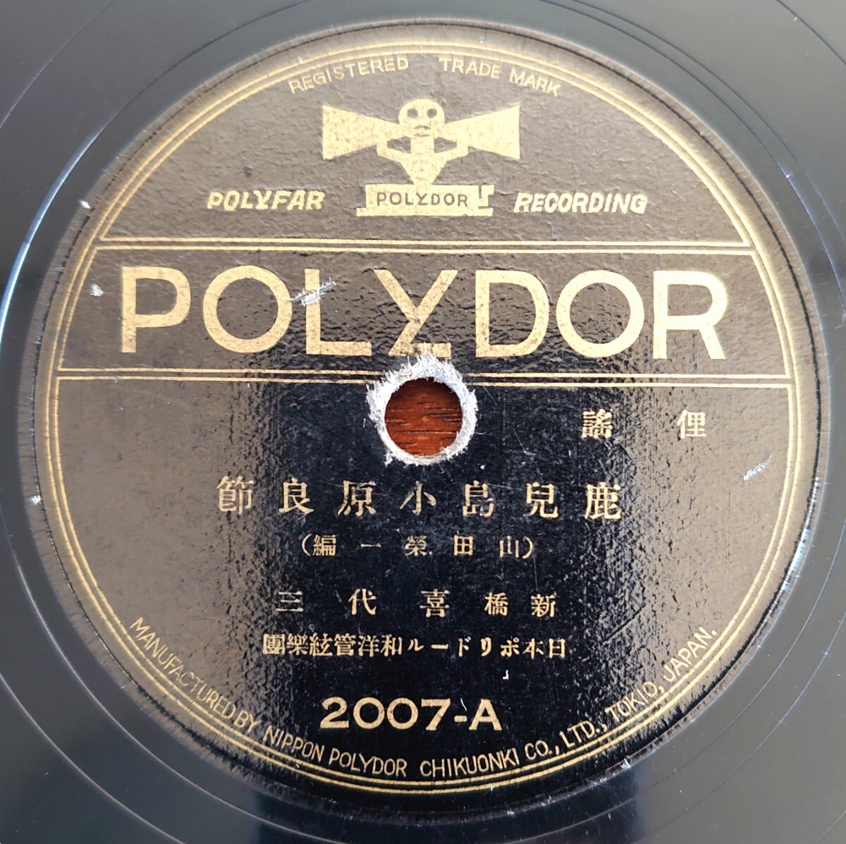 - 【SP盤レコード】POLYDOR 2007 俚謠/鹿兒島小原良節-鹿児島/鹿兒島三下り/新橋 喜代三