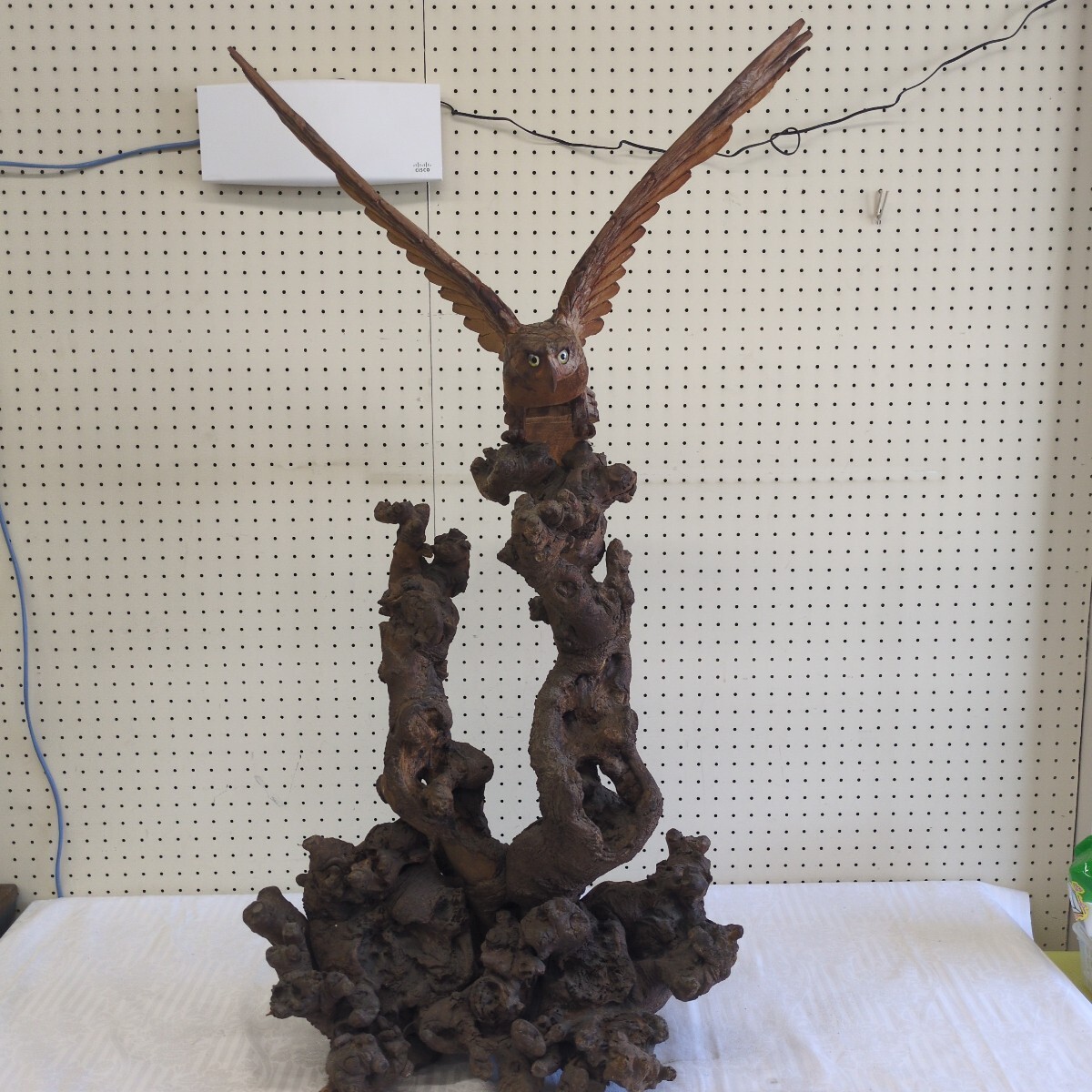 - 【引き取り限定】鷹の置物 木製 特大 詳細不明…