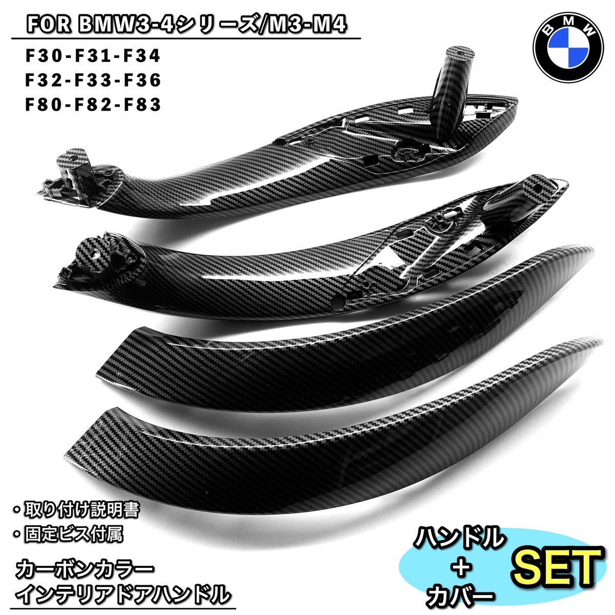 > BMW 3/4シリーズ M3/M4 カーボンカラー ドアハンドルカバー 内装パーツ トリム パネル F30 F31 F80 F82/F83 F32/F33/F34/F36