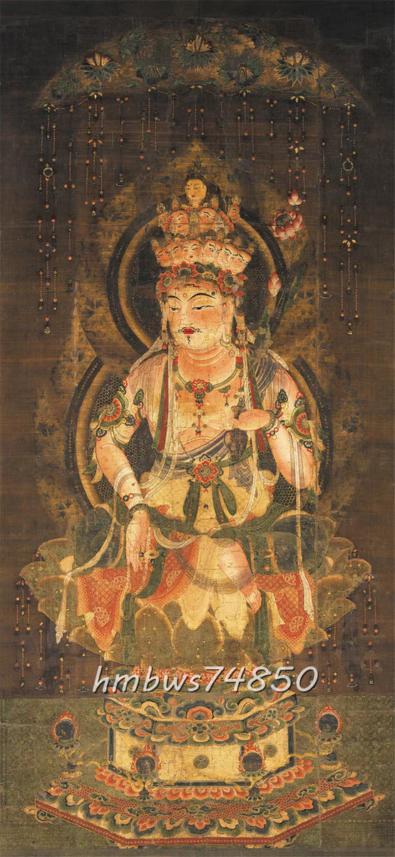 - 十一面観音 仏像 仏画 絹布 観世音菩薩 仏画 菩薩像 観音像 仏教美術 絹本 掛け物 未表装