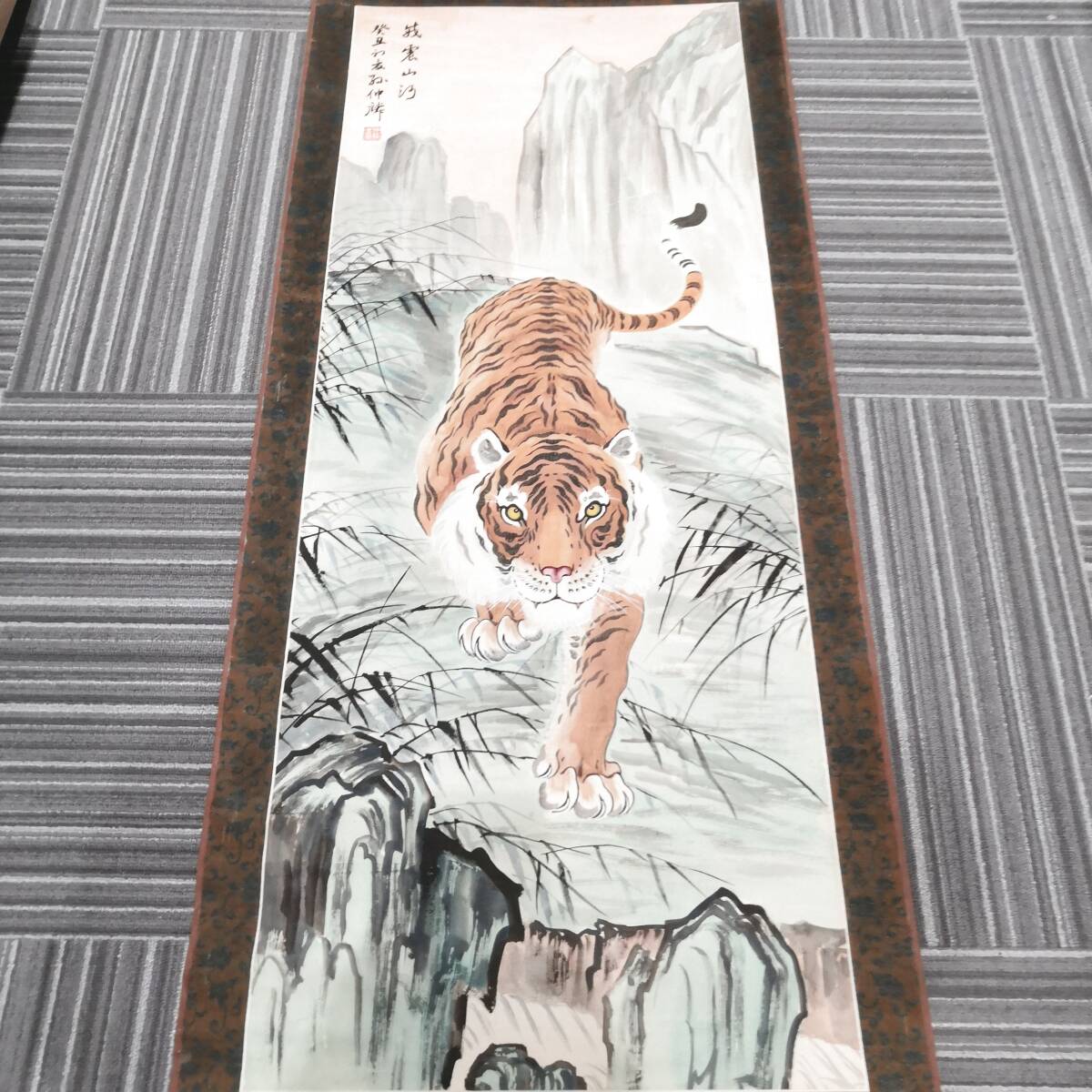 - 【70】動物 トラ 巻物 掛け軸 掛軸 日本画 骨董 日本書 伝統品 骨董品 時代物 年代物 美術品 芸術品 コレクション