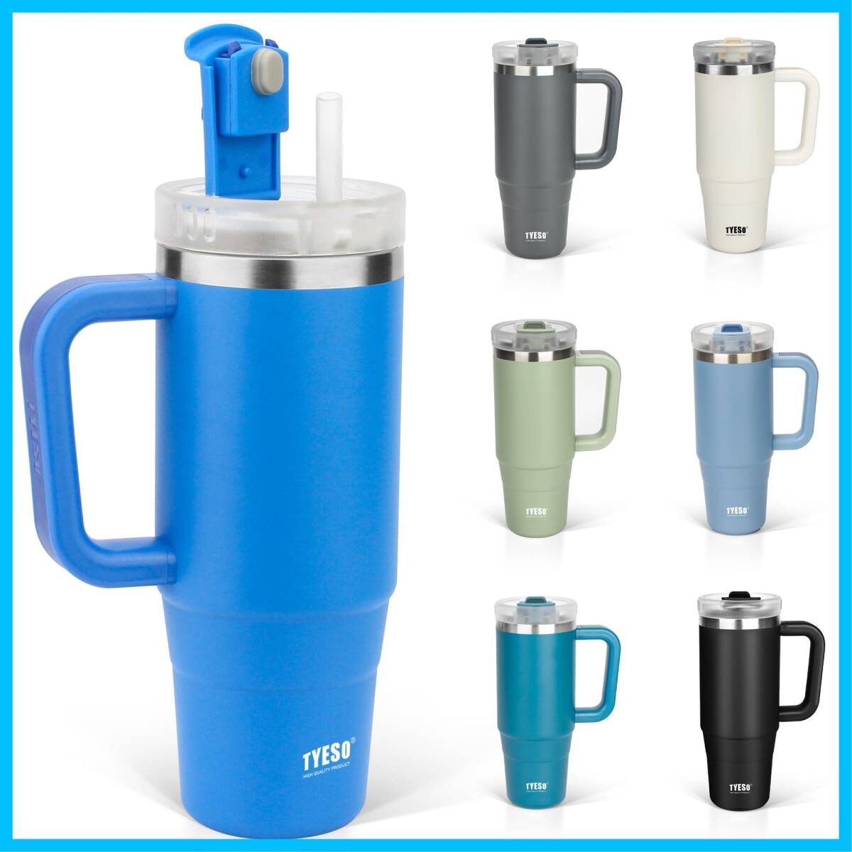 - ブルー 1200ml 男の子 女の子 直飲 大容量 広口 二重構造 真空断熱 アウトドア ジョッキ 取っ手付き ストロー ウォータ