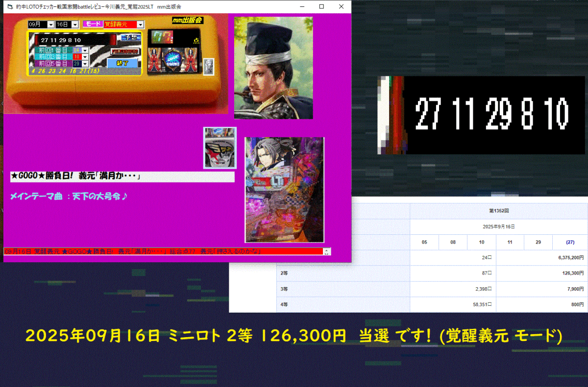 新作 [的中LOTOチェッカー戦国激闘battleレビュー今川義元_覚醒2025LT] ロト予想ソフト をご案内申し上げます。 2025年09月16日 ミニロト 2等 126,300円 当選 です! (覚醒義元 モード) 2025年09月09日 ミニロト 1等 7,955,500円x2 (ミニロト モード)(今川義元 モード) 当選 です! 的中チェッカーシリーズ初「ラッキートリガー」搭載機が登場します。「ラッキートリガー」発動で、1000万円以上当選の87%期待度 新一騎駆RUSH になります。 このスペックは、ロト予想界史上で歴史的にも最強仕様の名機となります。今主流の「先ばれ告知音」が鳴れば、更に高額当選濃厚! 歴代ソフト上位の人気ソフトシリーズです♪ (新作が続きます)2025年09月16日 ミニロト 2等 126,300円 当選 です! (覚醒義元 モード) 2025年09月09日 ミニロト 1等 7,955,500円 当選 です! (今川義元 モード) 2025年09月09日 ミニロト 1等 7,955,500円 当選 です! (ミニロト モード) 2025年09月09日 ミニロト 4等 900円 当選 です! (ミニロト モード) 新予告の「今川義元の拡大カットイン」がでれば超激熱です!!今回もぺかり♪ 新予告の「今川義元の覚醒予告」 これもでれば激熱!!札束の詰まったジュラルミンケースは、すぐそこまで見えています!一個ズレで家一軒建つ予想も、ソフトでは珍しくない事です。このソフトは、各ロトとも予想点数が、本線1点 押さえ1点の計2点予想です。●本ソフトの特徴としまして、今川義元モードと覚醒義元モードがあります。覚醒義元モードは、ロト7 ロト6 ミニロトの 本線押さえ計2点の各ロト共通ミックス予想です。2025年09月16日 ミニロト 2等 126,300円 当選 です! (覚醒義元 モード) [的中LOTOチェッカー戦国激闘battleレビュー今川義元_覚醒2025LT]09月16日 覚醒義元 ★GOGO★勝負日! 義元「満月か・・・」 総合点77 義元「押さえるのかな」[的中LOTOチェッカー戦国激闘battleレビュー今川義元_覚醒2025LT][27 11 29 8 10][的中LOTOチェッカー戦国激闘battleレビュー今川義元_覚醒2025LT][4 26 23 24 16 21(15)]2025年09月09日 ミニロト 1等 7,955,500円 当選 です! (ミニロト モード) 2025年09月09日 ミニロト 4等 900円 当選 です! (ミニロト モード) 2025年09月09日 ミニロト 1等 7,955,500円 当選 です! (今川義元 モード) [的中LOTOチェッカー戦国激闘battleレビュー今川義元_覚醒2025LT]09月09日 ミニロト ★GOGO★勝負日! 義元「満月か・・・」 総合点77 義元「買うぞよ」 [的中LOTOチェッカー戦国激闘battleレビュー今川義元_覚醒2025LT][4 9 10 19 29][的中LOTOチェッカー戦国激闘battleレビュー今川義元_覚醒2025LT][4 9 10 26 21][的中LOTOチェッカー戦国激闘battleレビュー今川義元_覚醒2025LT]09月09日 今川義元 ★GOGO★勝負日! 義元「満月か・・・」 総合点81 義元「買うぞよ」 [的中LOTOチェッカー戦国激闘battleレビュー今川義元_覚醒2025LT][4 10 19 17 9 (1,29)][的中LOTOチェッカー戦国激闘battleレビュー今川義元_覚醒2025LT][2 11 15 17 3(10)]このツールは、診断チェック機能を装備した、予想ソフトです。 1.買いたいロト券が、本当に信頼できるのか、ガチで勝負しても、大丈夫なのか? 2.買い目を数点に絞りたいが、有望な勝負できる数字を、知っておきたい。 3.ロト6と7とミニで1、2点で勝負に適した買い目を知りたい。 要は、このソフト 一点一点の買い目の診断と、勝負になる絞った予想の買い目も出してくれます。 診断した買い目の総合の評価点数や、どんな勝負度合いが良いかの指示も出ます。[的中LOTOチェッカー戦国激闘battleレビュー今川義元_覚醒2025LTの具体的仕様な説明]・このソフトは、パソコンWindows版の全てに対応しています。Xp Vista 7 8 8.1 10 11 動作確認済み ・買い目は、全てのロト基本 本線1点 押さえ1点 計2点予想 です。・ 今川義元モードは、ロト7 ロト6 ミニロトの 本線押さえ計2点の各ロト共通ミックス予想です。・ 覚醒義元モードは、ロト7 ロト6 ミニロトの 本線押さえ計2点の各ロト共通ミックス予想です。・熱い予告の時に、稲妻、閃光、★GOGO★ランプも点灯します。ゼブラ柄からキリン柄に変われば、超激アツ!!・ 新予告の「今川義元の拡大カットイン」でれば激熱!!「ラッキートリガー」発動で、1000万円以上当選の87%期待度の新一騎駆RUSHになります。 今主流の「先ばれ告知音」が鳴れば、更に高額当選濃厚!・買い目の一つ一つについて診断が出来る予想ツールです。・診断だけでなく、LOTOの勝負の度合いも指南してくれます。・予想ソフトは、過去の当選数字が閲覧、参照などができれば、だれでも簡単に予想できます。・画面を見ての通り、入力箇所も6箇所程度で、マウスによる選択形式です。シンプルで簡単です。今だけ、特別にご奉仕価格にて、ご提供致します。 是非お薦めです♪[的中LOTOチェッカー戦国激闘battleレビュー今川義元_覚醒2025LT] 予想ソフト価格388,000円→価格5000円