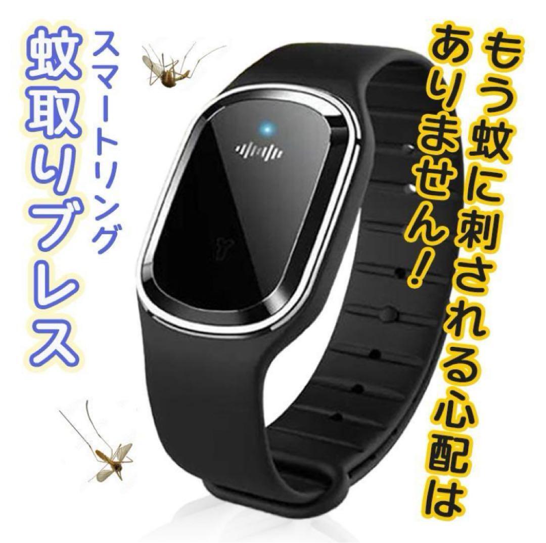 - 蚊 虫除け 虫よけ 超音波 バンド 時計型 スマートリング 黒 蚊よけ シリコン