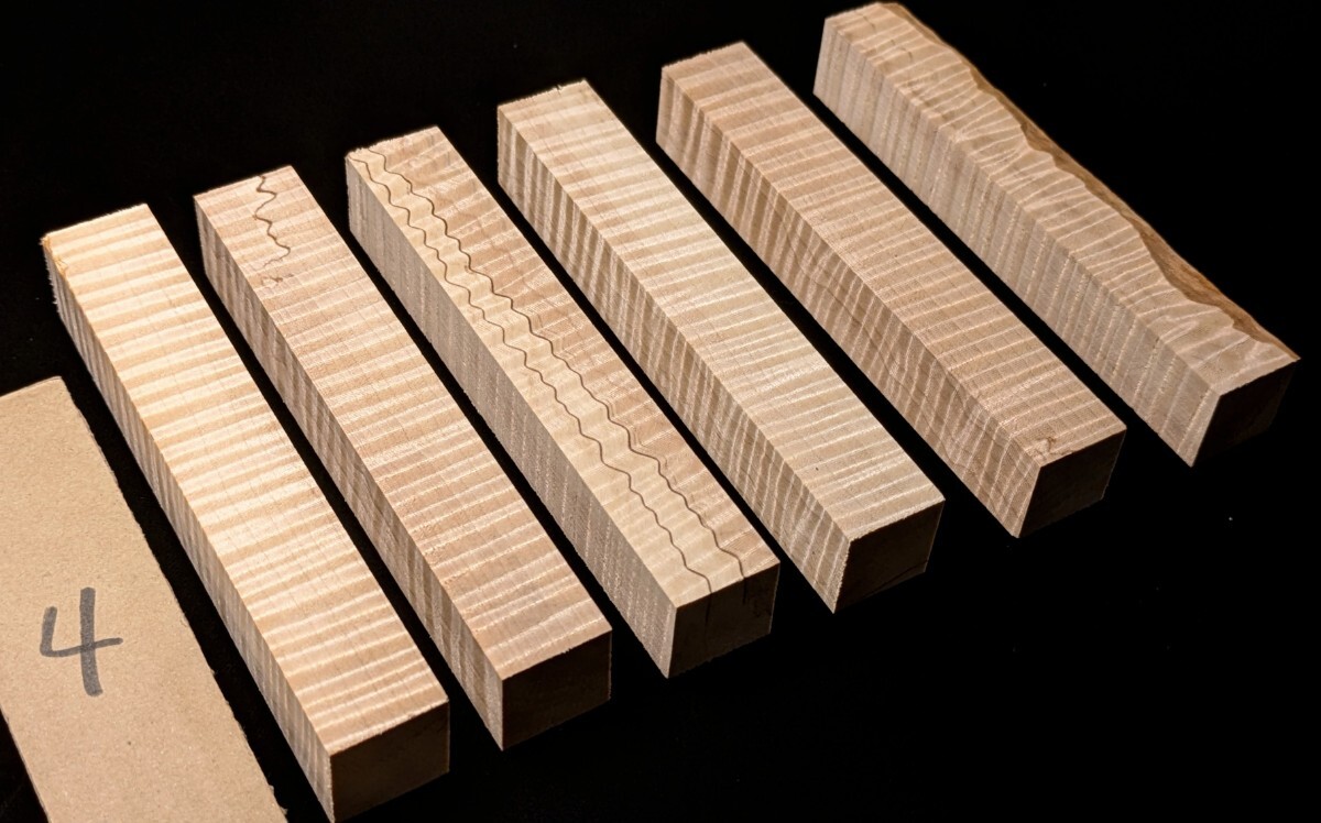 - ◆栃 トチ 縮杢 角材◆ ペンブランク ハンドル材等◆ 〜120mm×〜19mm×〜18mm ④ 6本セット◆