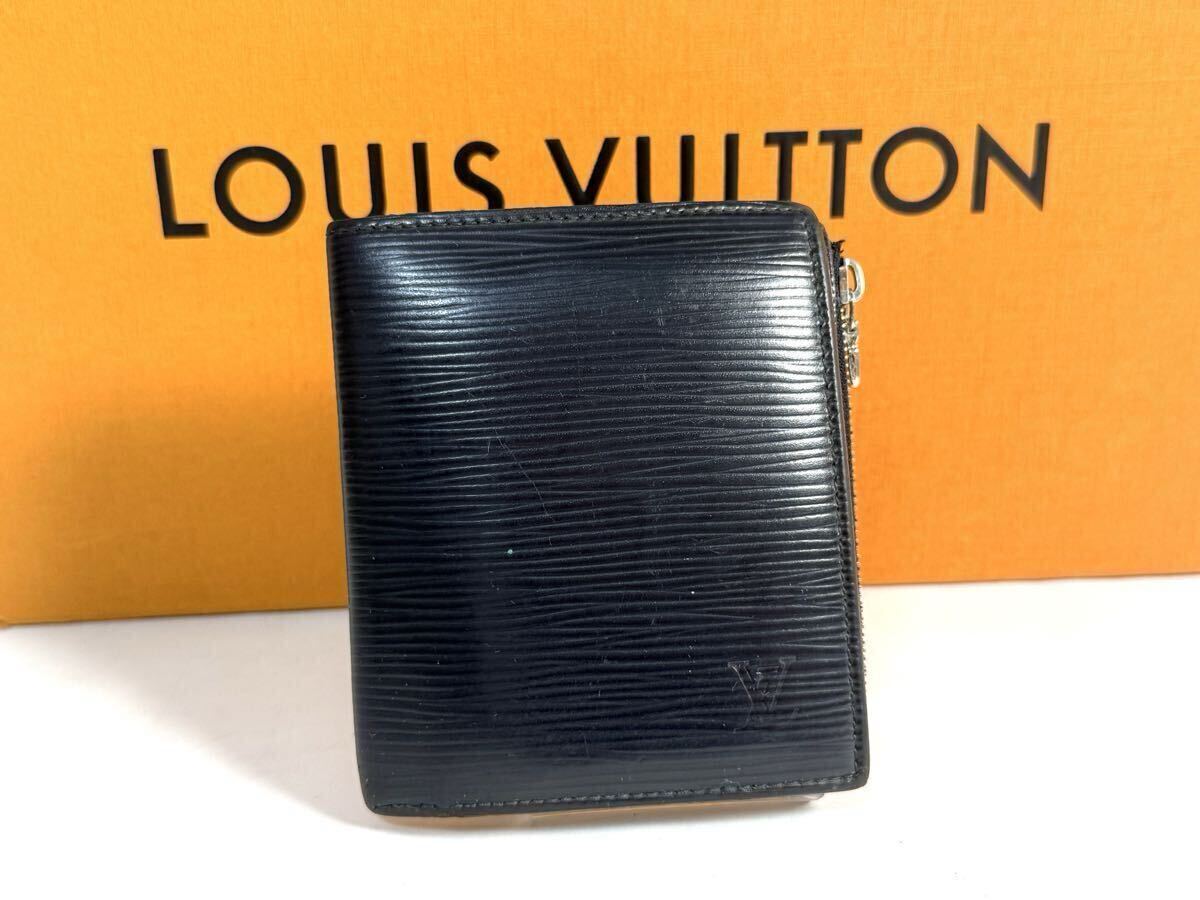 - 894 美品 LOUISVUITTON ルイヴィトンM64007 エピ ポルトフォイユスマート二つ折り財布 財布 コンパクトウォレット ブラック ネイビー系
