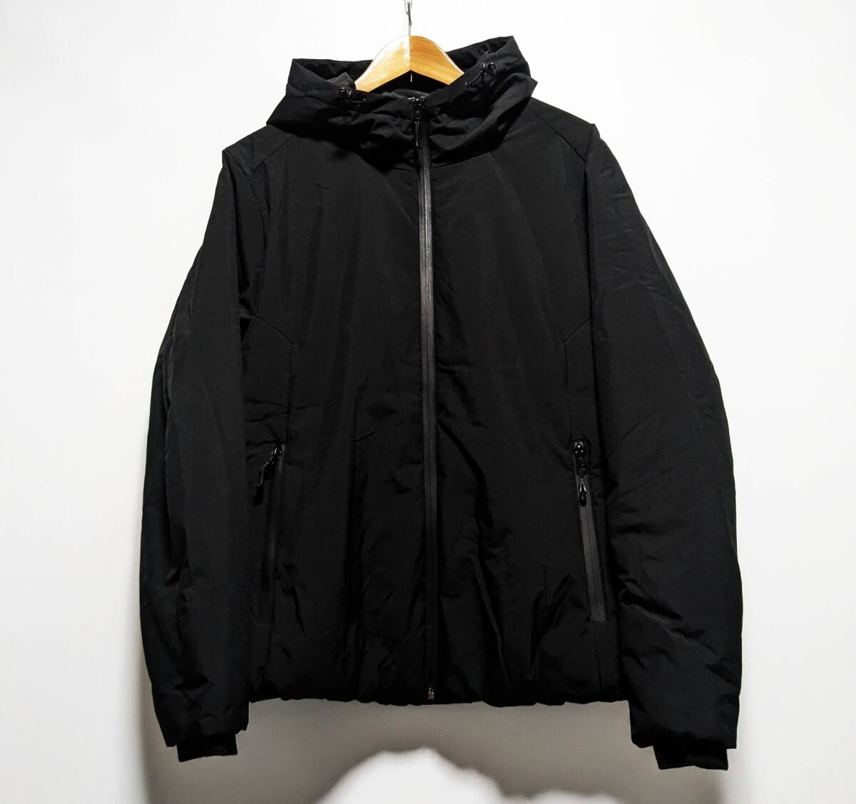 - 美品 LOGOS ロゴス 秋冬 ストレッチ フラットダウンパーカー ダウンジャケット 中綿ジャケット 中綿パーカ ブルゾン 黒 メンズL