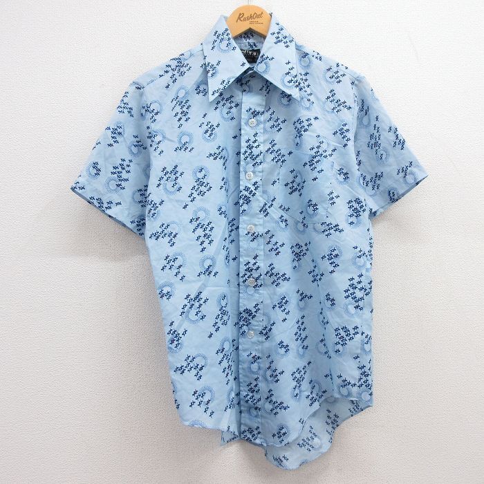 - M/古着 半袖 シャツ メンズ 70s 総柄 薄紺他 ネイビー 24mar04 中古 トップス