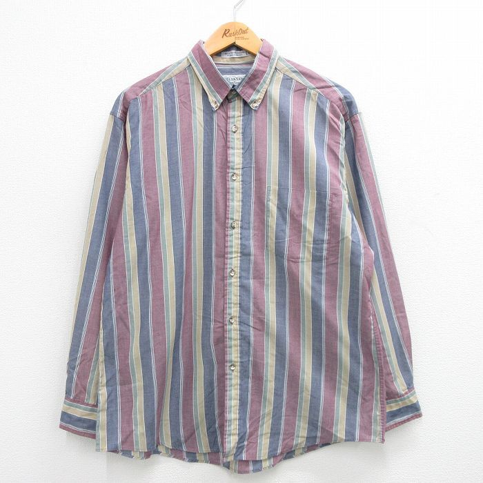 - L/古着 長袖 シャツ メンズ ボタンダウン 紺他 ネイビー ストライプ 24feb20 中古 トップス