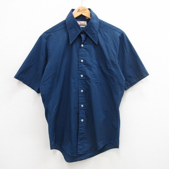 - M/古着 キャンパス 半袖 シャツ メンズ 70s 紺 ネイビー 24jul30 中古 トップス