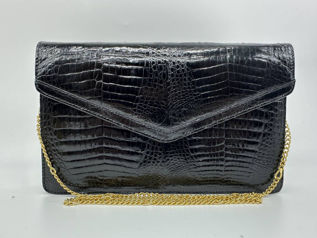 - ●91254 KAIYO クロコダイル ハンドバッグ ブラック シングル チェーン
