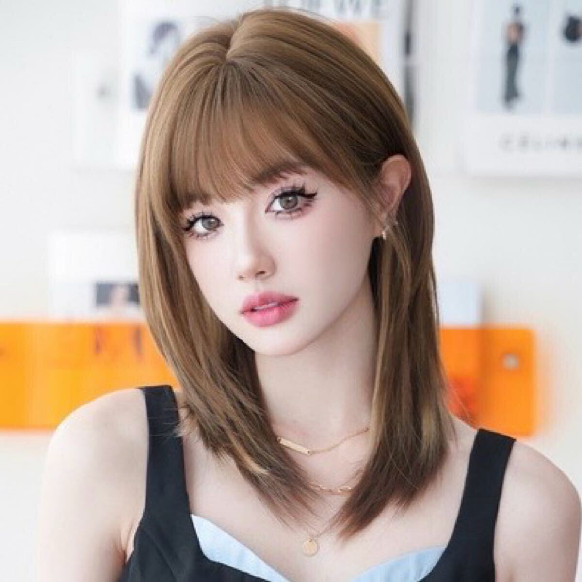 - W10◎フルウィッグ ファッションウィッグ ミディアム レイヤー ブラウン 自然 かつら