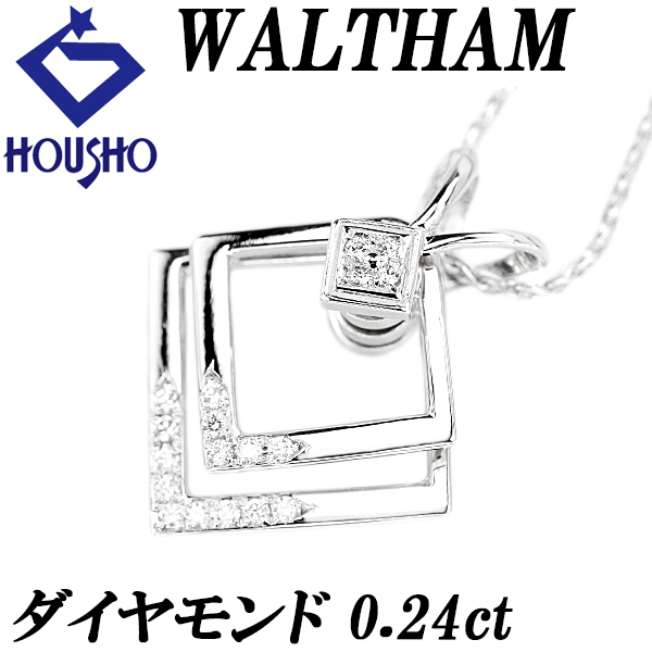 > ウォルサム ダイヤモンド ネックレス K18WG WALTHAM スイング 揺れる 透かし 四角 正方形 スクエア 送料無料 中古 宝正 902665