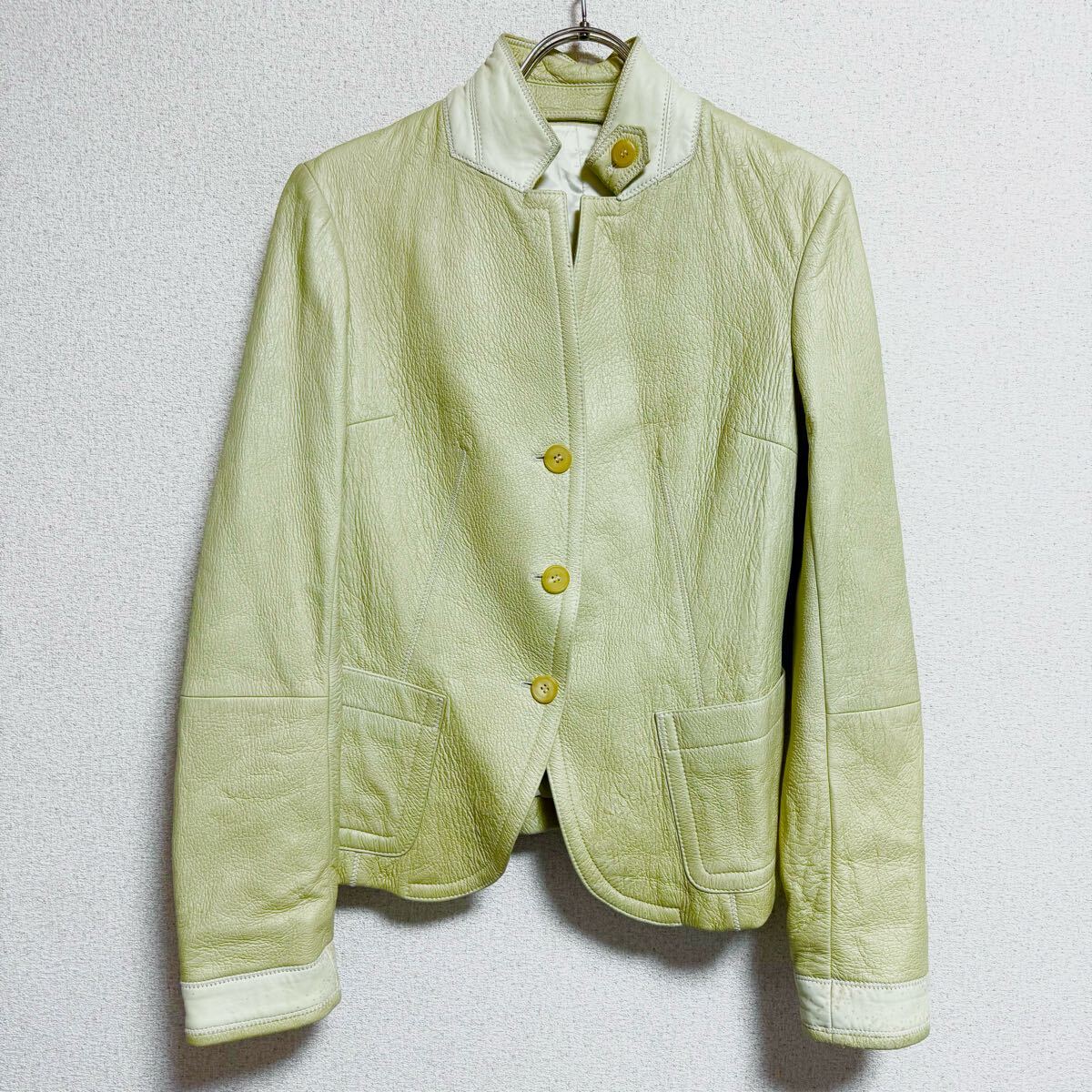 > 本革 イタリア製 Neil Barrett ニールバレット レザージャケット テーラードジャケット ライトグリーン レディース サイズ L相当 *AY