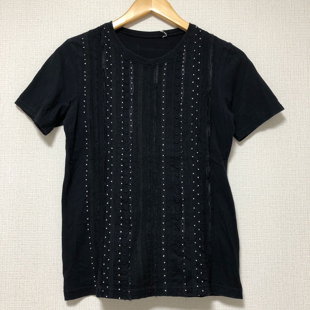 - (k) HaaT HeaRT ISSEY MIYAKE イッセイミヤケ 半袖 tシャツ Tee カットソー レディース 2 刺繍 パッチワーク 黒 ブラック コットン