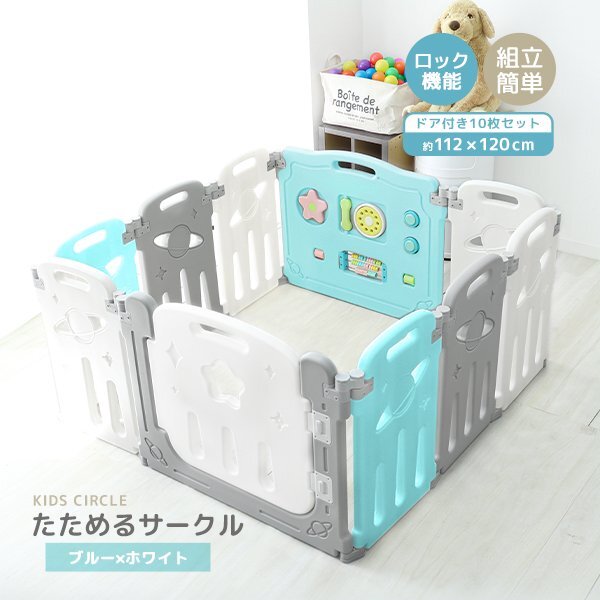 - 新品 ベビーフェンス 10枚セット おもちゃ付き ドアロック 簡単組立 ベビー ガード キッズ サークル ミュージカルキッズランド ブルー