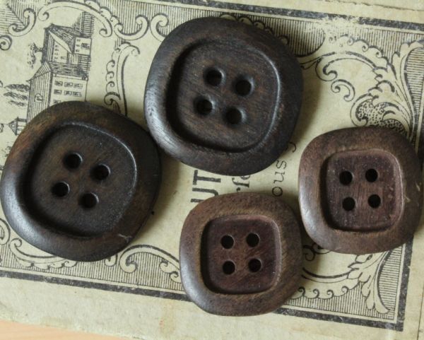 - 即決 木製ボタン 4個 20x20mm 25x25mm スクエア 角丸 ウッドボタン フランス輸入