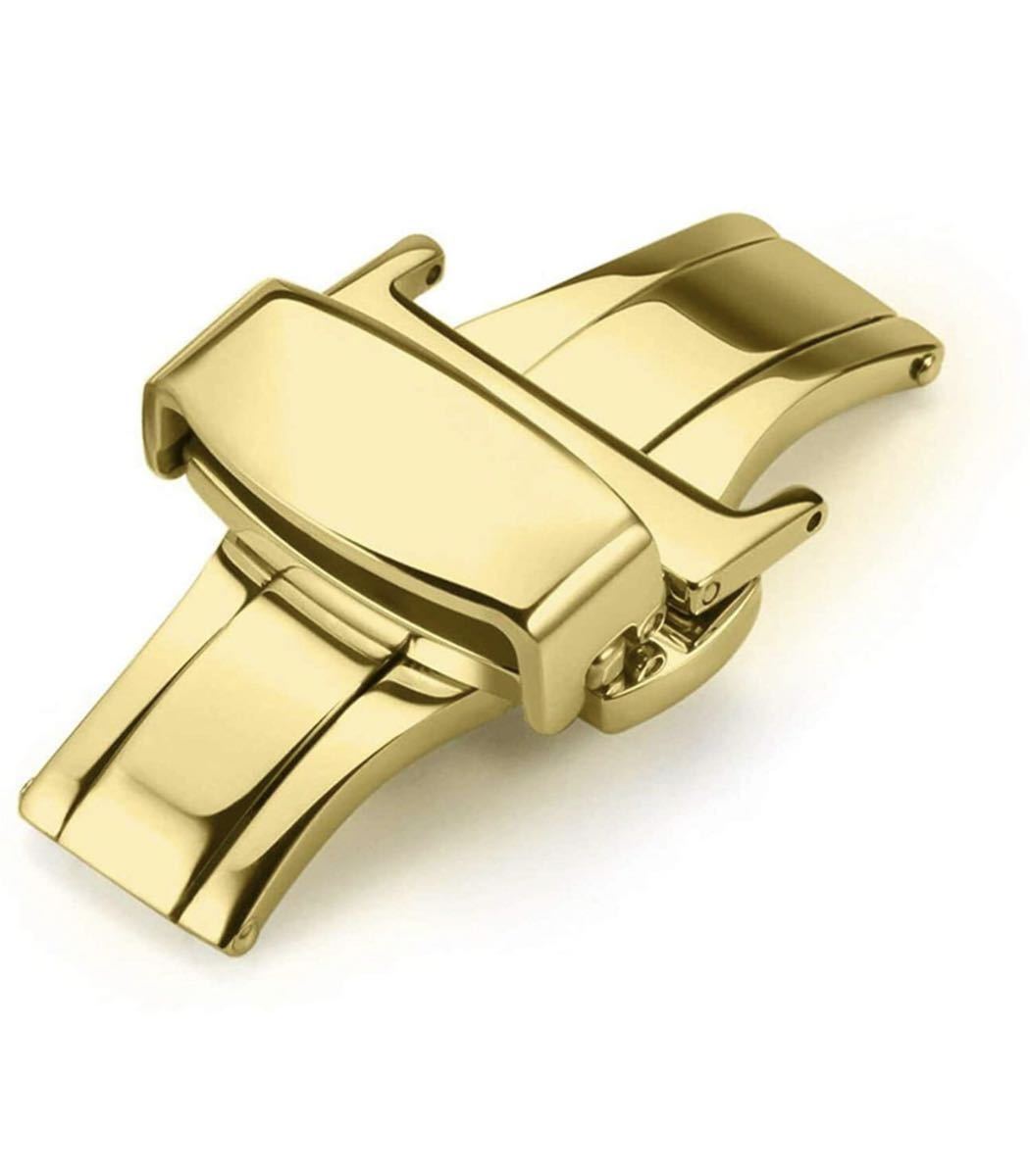 - Dバックル 腕時計 両開き式 観音開き 尾錠 時計バックル 中留 16mm イエローゴールド バネ棒付き