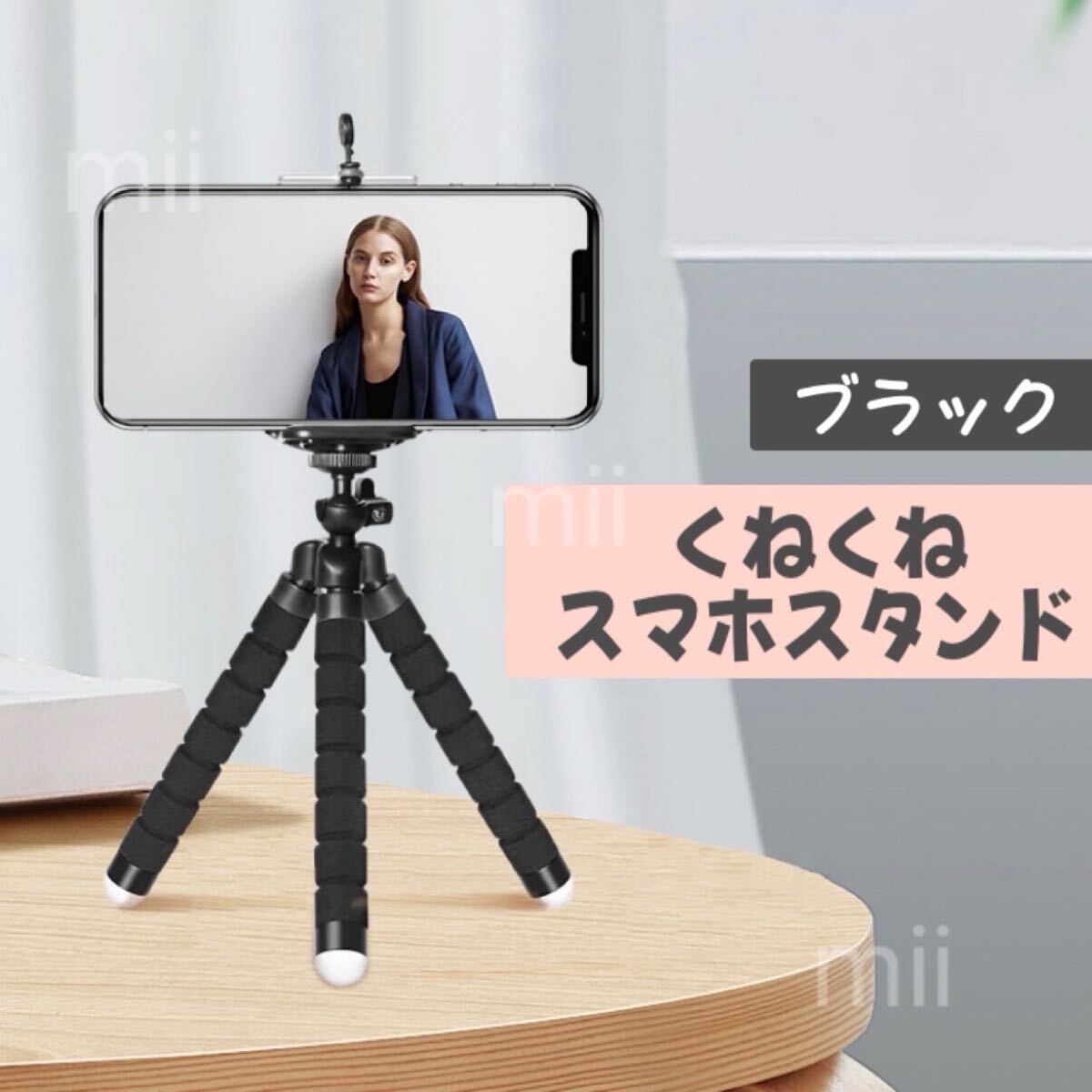 - 【再入荷】スマホスタンド 三脚 スマホホルダー カメラスタンド 固定 iPhone 黒 くねくね
