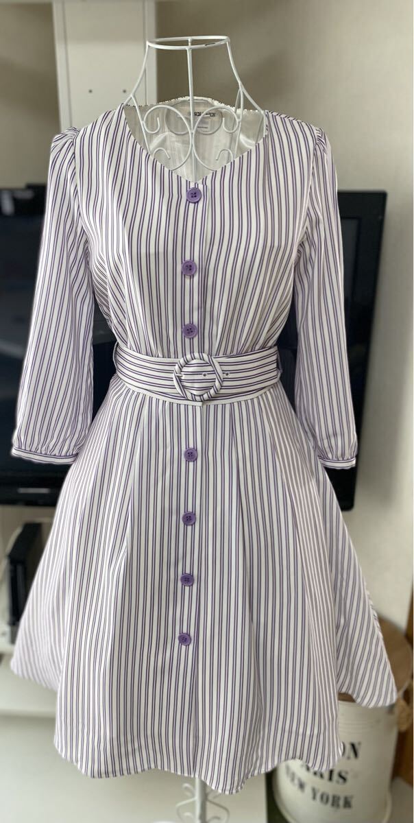 - 美品MISCH MASCH ミッシュマッシュストライプ柄ワンピース ベルト付き パープル