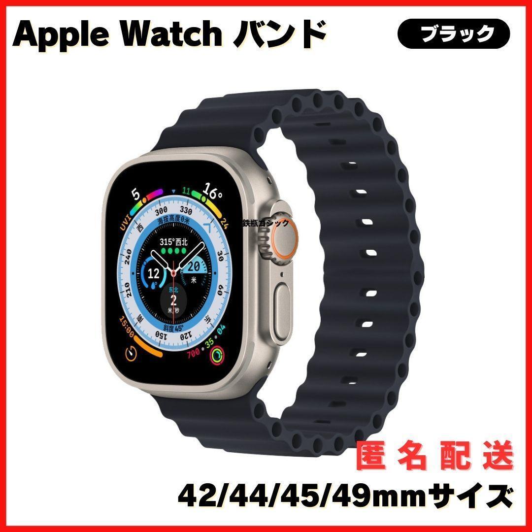 > アップルウォッチバンド Apple Watch band オーシャンバンド風 スポーツ 42㎜/44㎜/45㎜/49㎜ 共通サイズ黒 ブラック シリコン 互換品