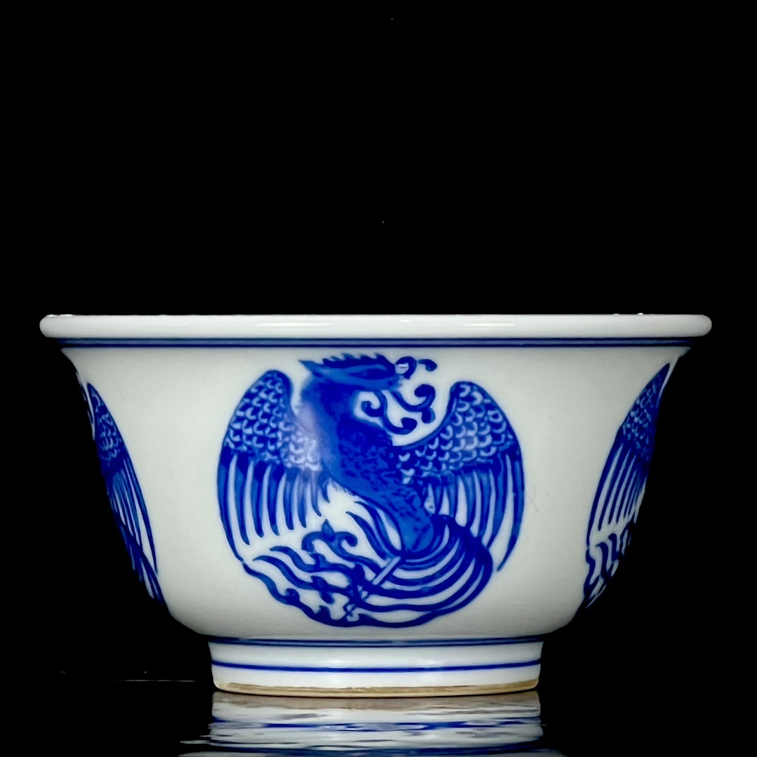 - 清時代 雍正年製款 古陶磁器 青花 鳳紋杯 茶杯 杯子 茶碗 文案置物 磁器 陶芸 擺件 時代物 古董品 骨董 旧家蔵出し 唐物 中国古玩 古美術品