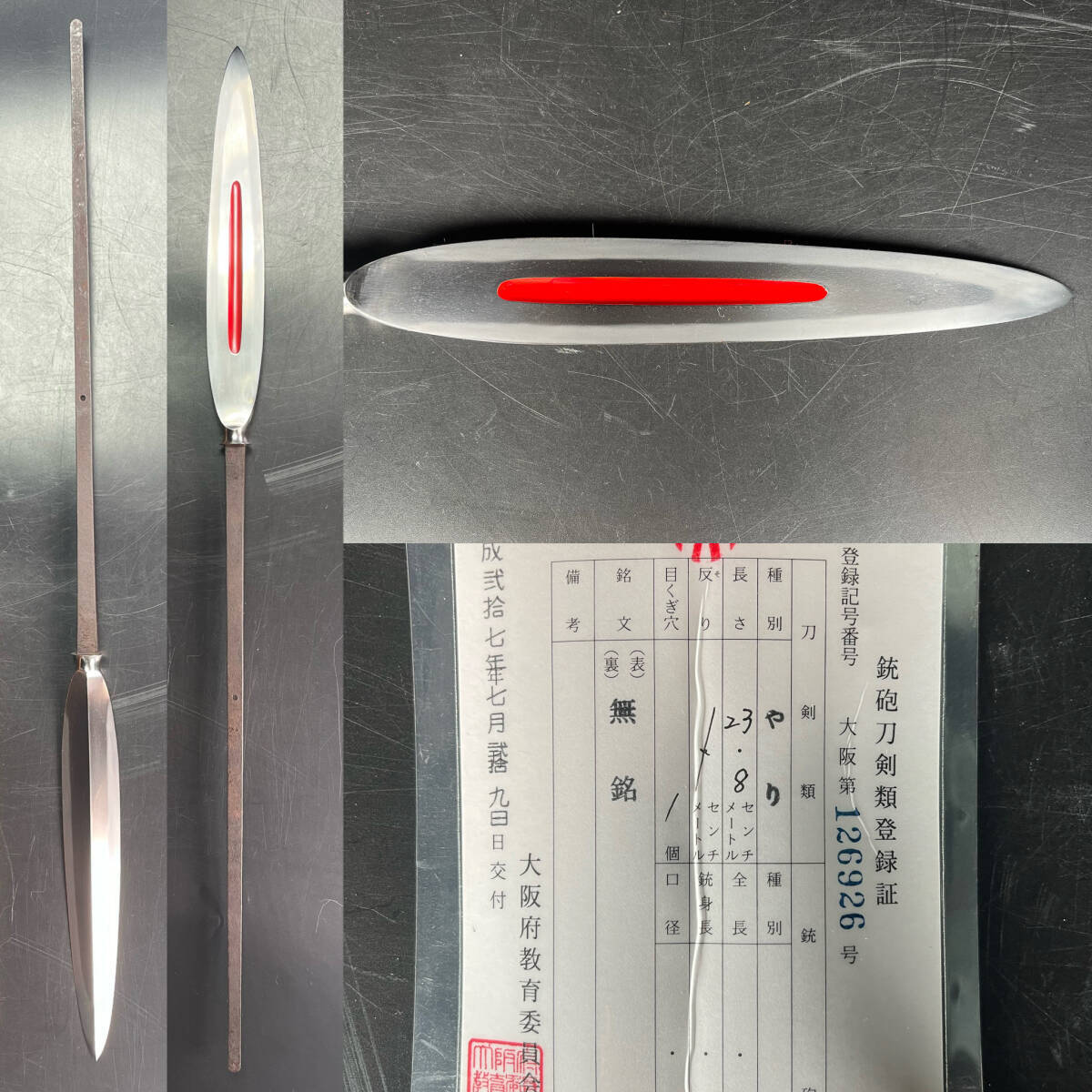 > ◇雅◇ 時代武具 やり 槍 三角槍 笹穂槍 無銘 刀長 23.8cm 波紋 刀剣武具骨董 刀装具 鎧 鍔 甲冑 白鞘 拵 脇差 短刀/TKB.25.9[A169] TXN