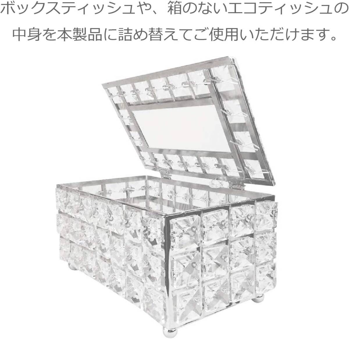 - 日常使い 高級感あふれるティッシュケース、豪華キラキラクリスタルデザイン、シルバ