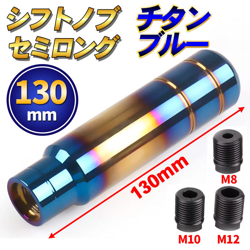 > シフトノブ ロング 130mm 汎用 チタン 焼き ブルー アルミ レインボー ゴールド カスタム マニュアル ドリ車 ダンプ トラック アダプター付