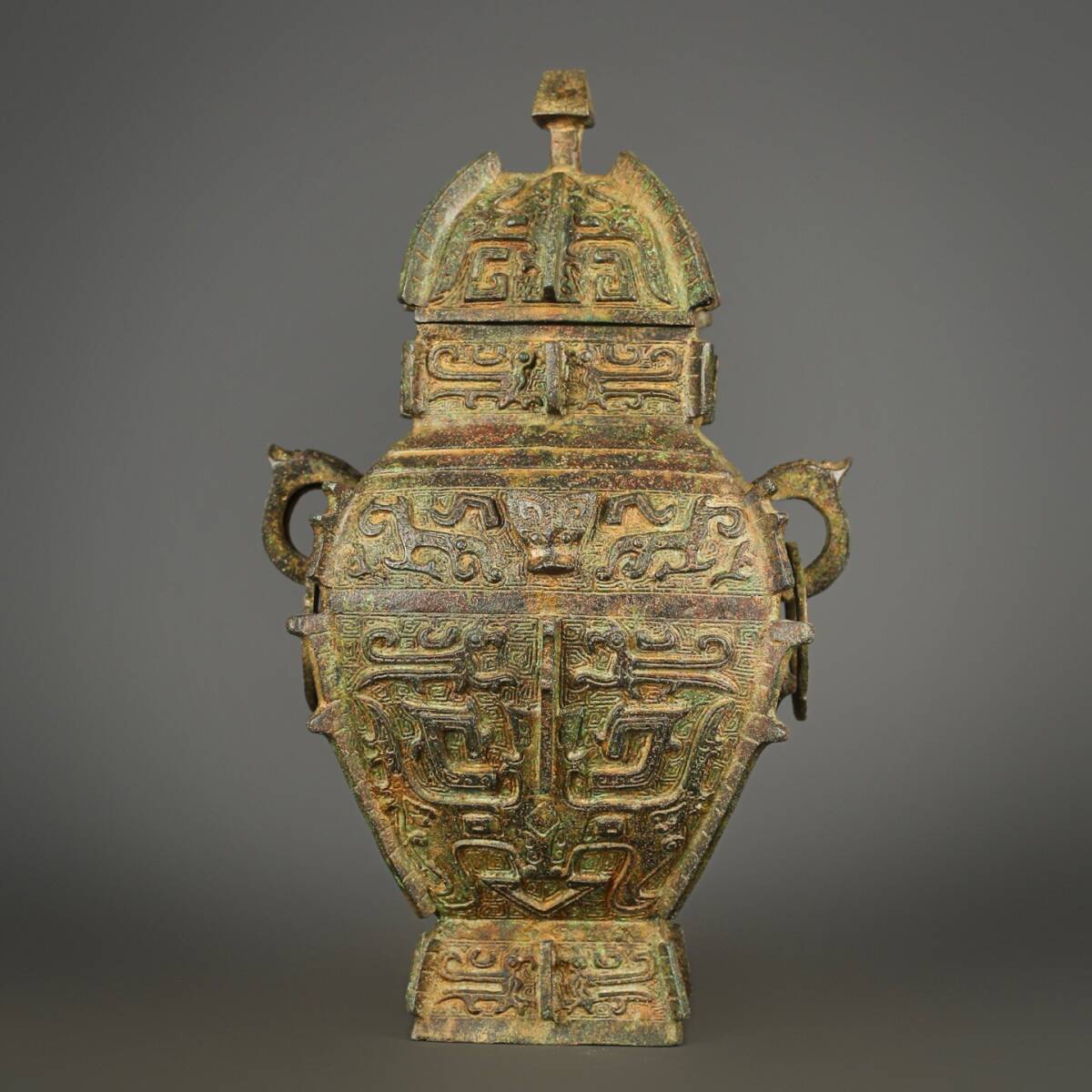 - 『西周・青銅製・青銅器・獣面方罍・酒器・食器・祭祀品・副葬品』極細工 置物 古賞物 中国古玩 中国古美術