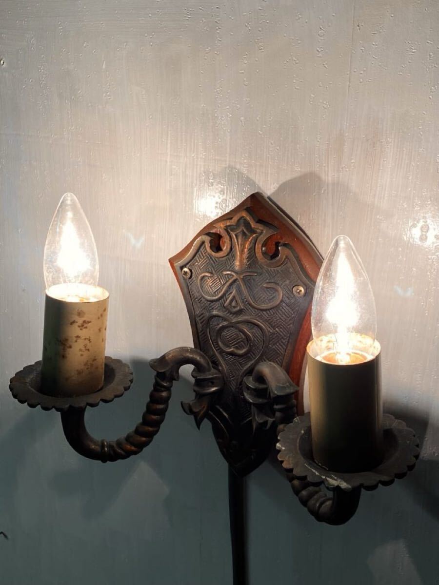 > アンティーク ブロンズ キャンドル ウォールランプ 2灯 ★ ビンテージ 照明 ブラケット ロウソク シャンデリア ウォールライト 壁掛け 壁