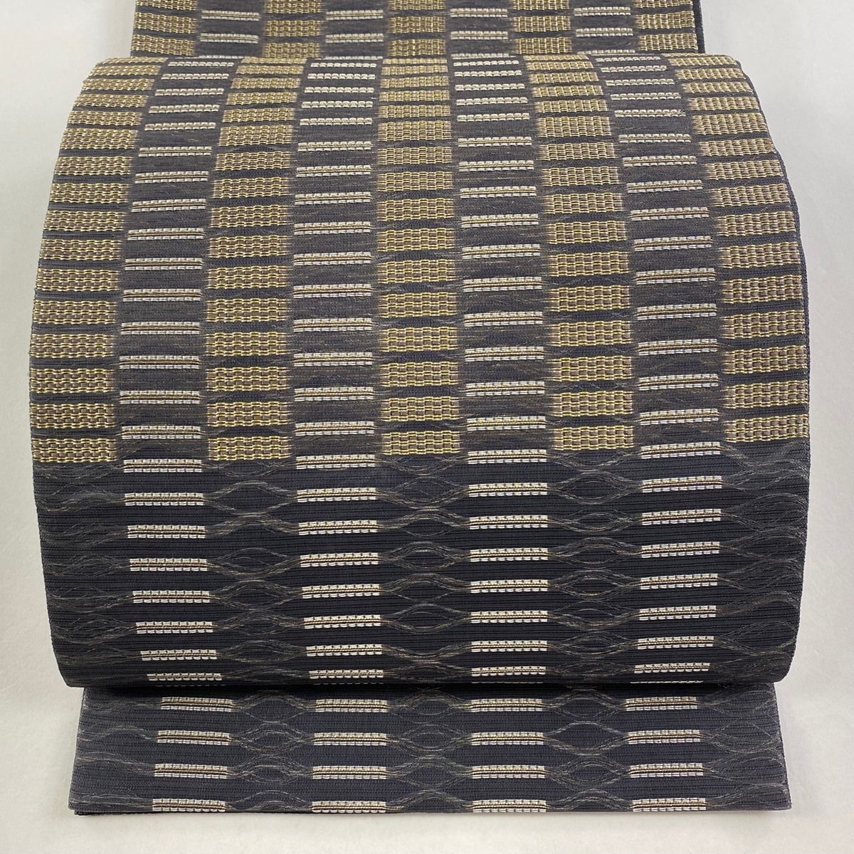 - 袋帯 名品 絽 夏帯 縞 金銀糸 灰紫 お太鼓柄 正絹 【中古】
