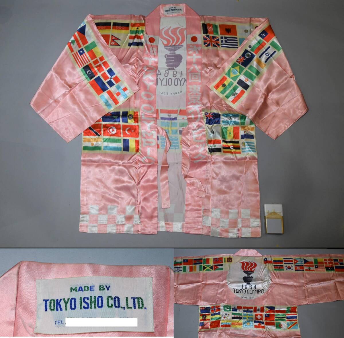> 希少 第18回 東京オリンピック 1964 法被 ピンク TOKYO OLYMPIC HAPPY COAT ハッピーコート 半被 はっぴ pink 東京衣装 当時物 記念品 昭和