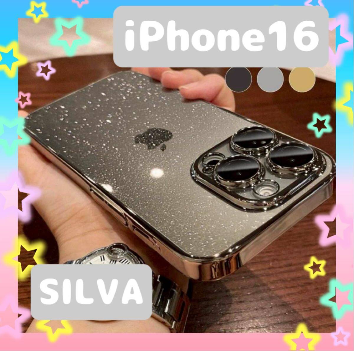- iPhone16 ケース クリアメタリック カメラレンズ保護 キラキラ シルバー