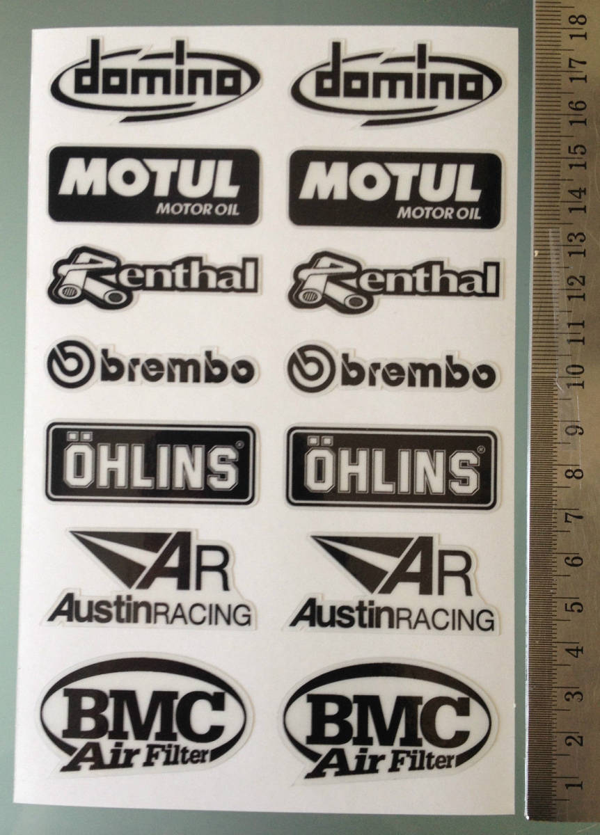 - 海外 限定品 送料込み domino MOTUL RENTHAL BREMBO OHLINS AUSTIN Decal バイク ヘルメット ステッカー シール デカール 14枚セット