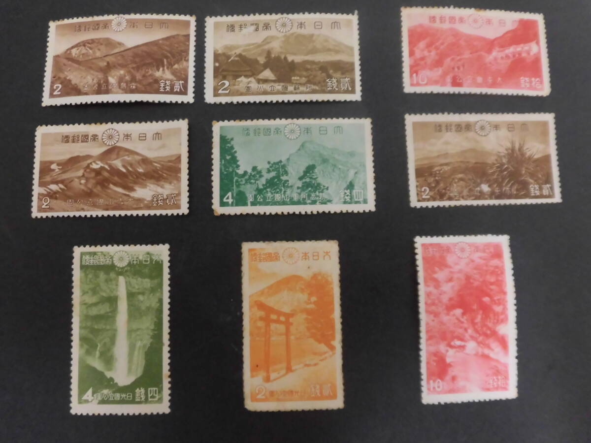 > 未使用品 現状品★レトロ切手 第1次国立公園切手 国立公園 大日本帝国郵便 切手 まとめて 合計9枚