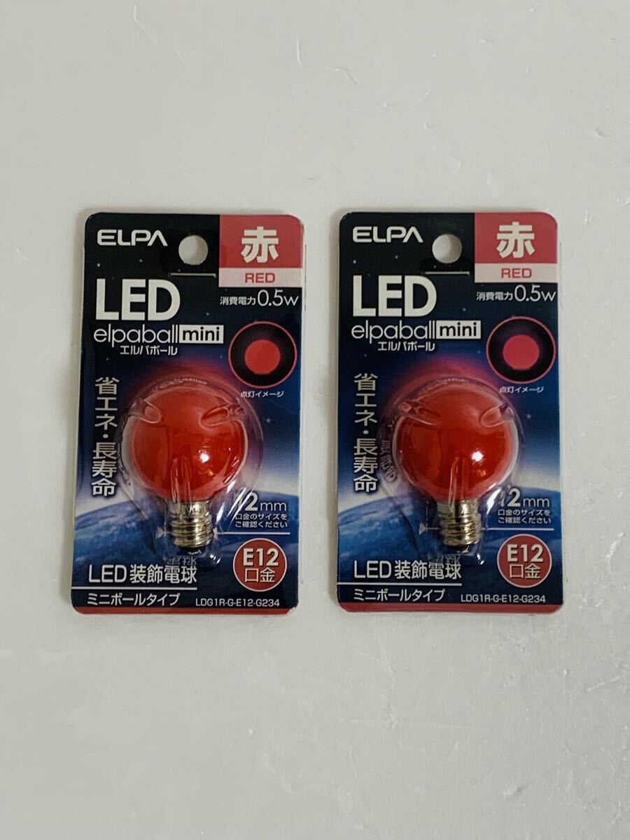 - ELPA エルパ 朝日電器 LED装飾電球 エルパボール LDG1RGE12G234 赤 E12 2個セット 未使用未開封品 ミニボールタイプ