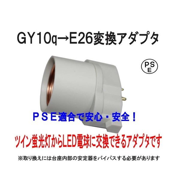 - PSE適合■GY10q(完全対応)→E26変換コネクタ(アダプタ)グロー式工事不要 FUL14/ FUL18適合