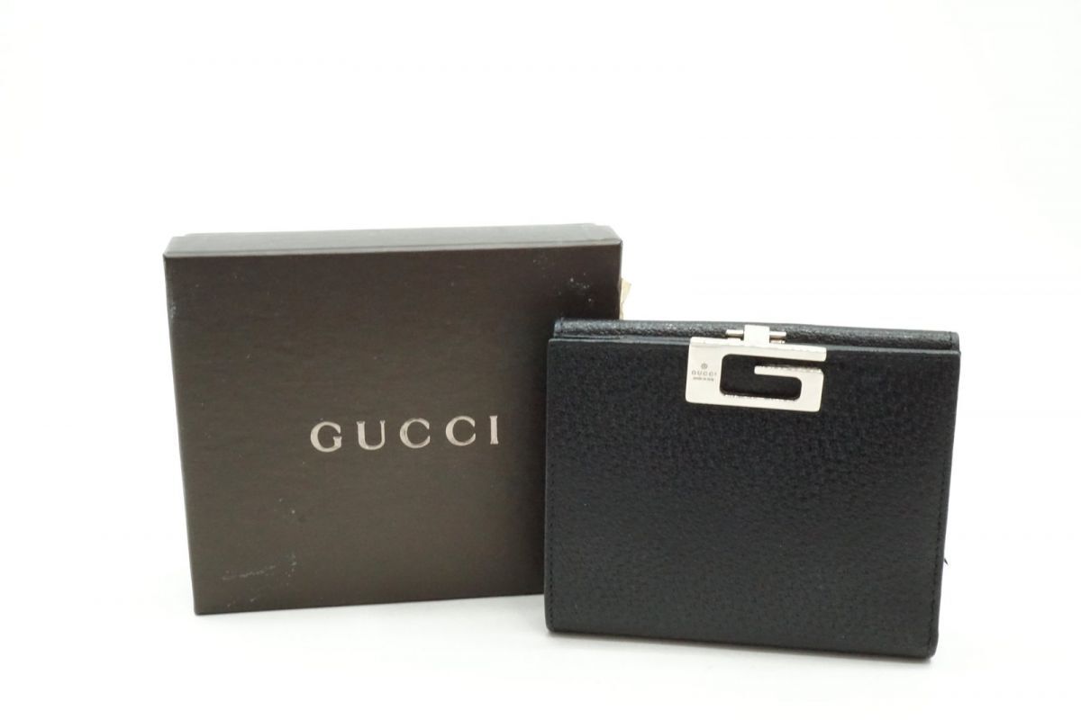 > グッチ 二つ折り 財布 サイフ 035 4276 2095 Gロゴ金具 コンパクト Unisex レザー 黒 ブラック GUCCI 3645k