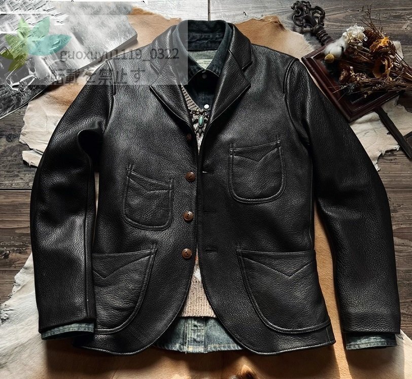 - 1.3mm ディアスキン ダリウススタイル テーラード・サックコート ブラック XL(40) サイズ選択可 レザージャケット 鹿革